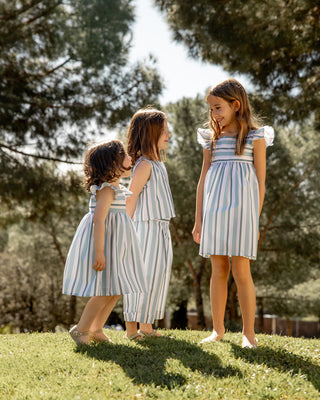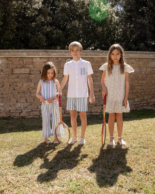 Mañanas suaves. Jardines en flor. Niños que juegan sin reloj. Una colección pensada para que la ropa se mueva con ellos — ligera, bonita y hecha para durar.