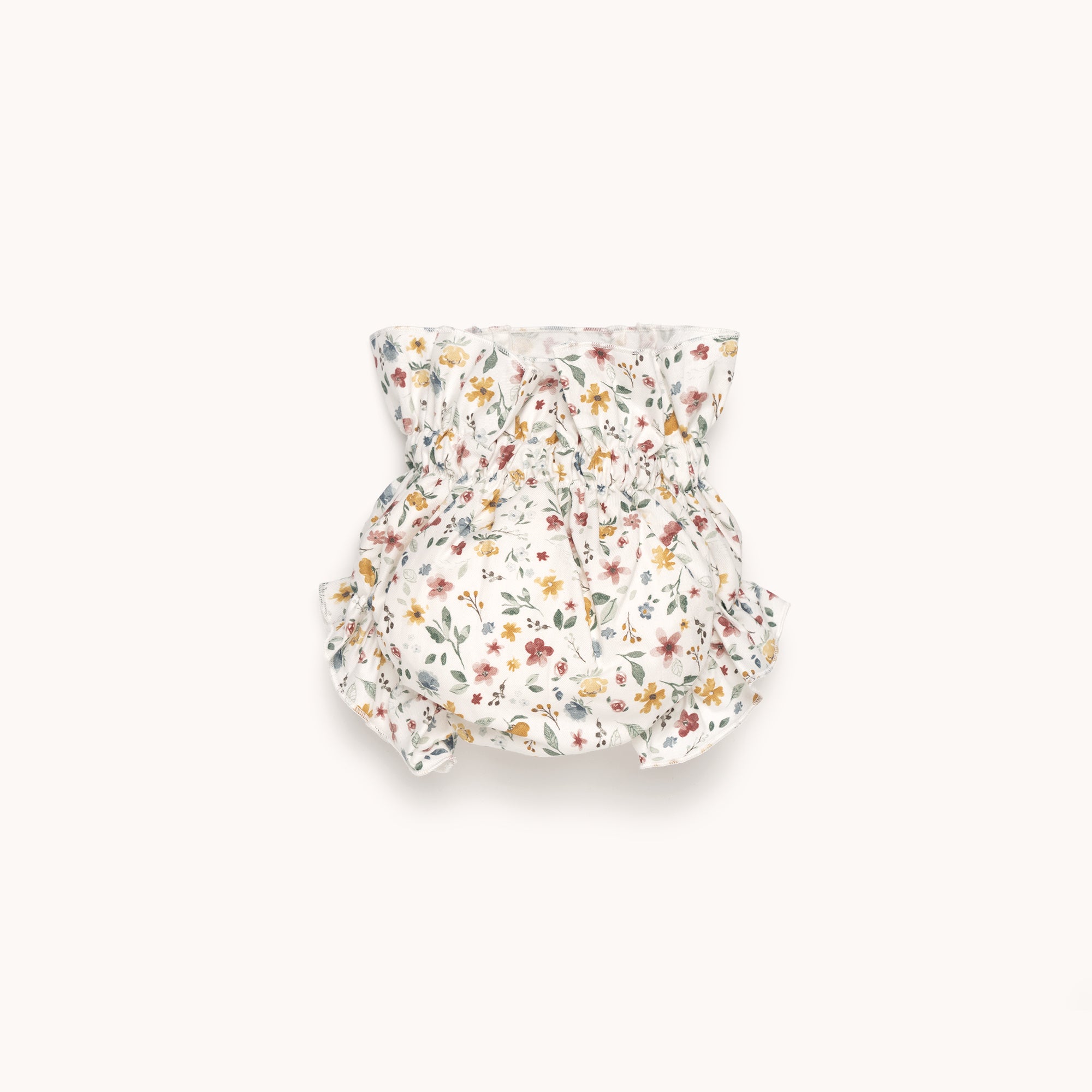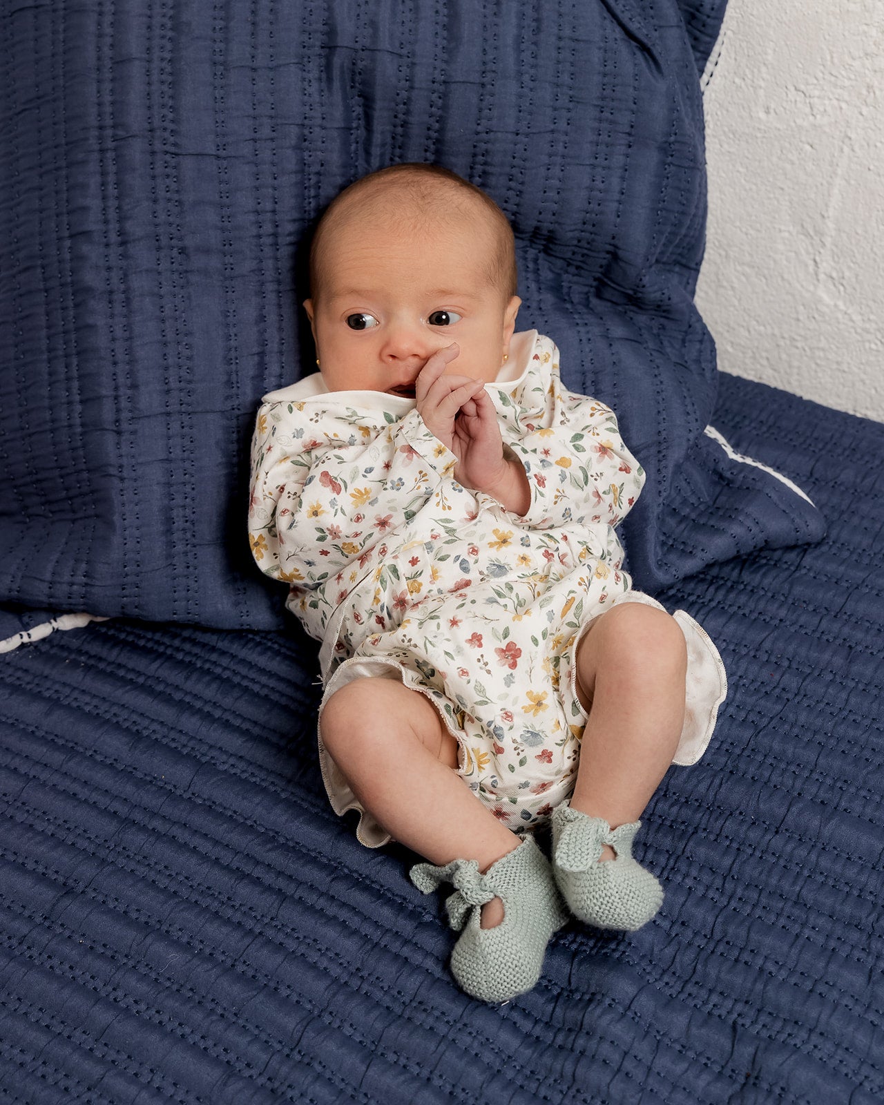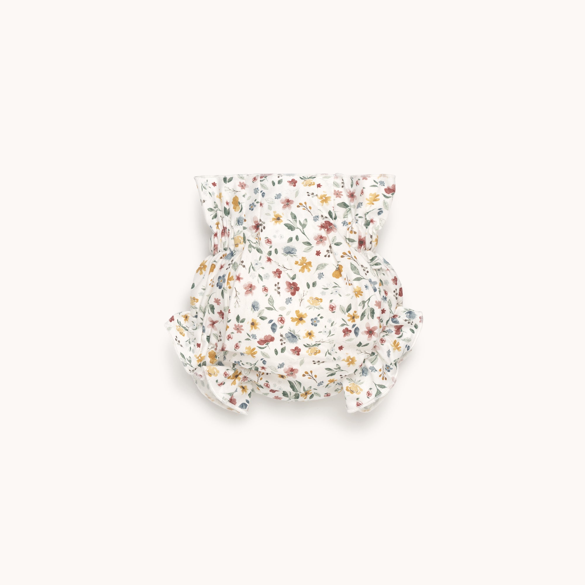 La braguita Bebé Volante Bloom es un básico imprescindible. Confeccionada en viyela estampada con mini flores, presenta pliegues delanteros y talle alto, pensados para proteger la espalda del bebé, además de un delicado volante que aporta un toque encantador. Forrada y confeccionada con mimo en tejido de alta calidad, suave y respetuoso con la piel. Disponible desde recién nacido hasta los 36 meses.