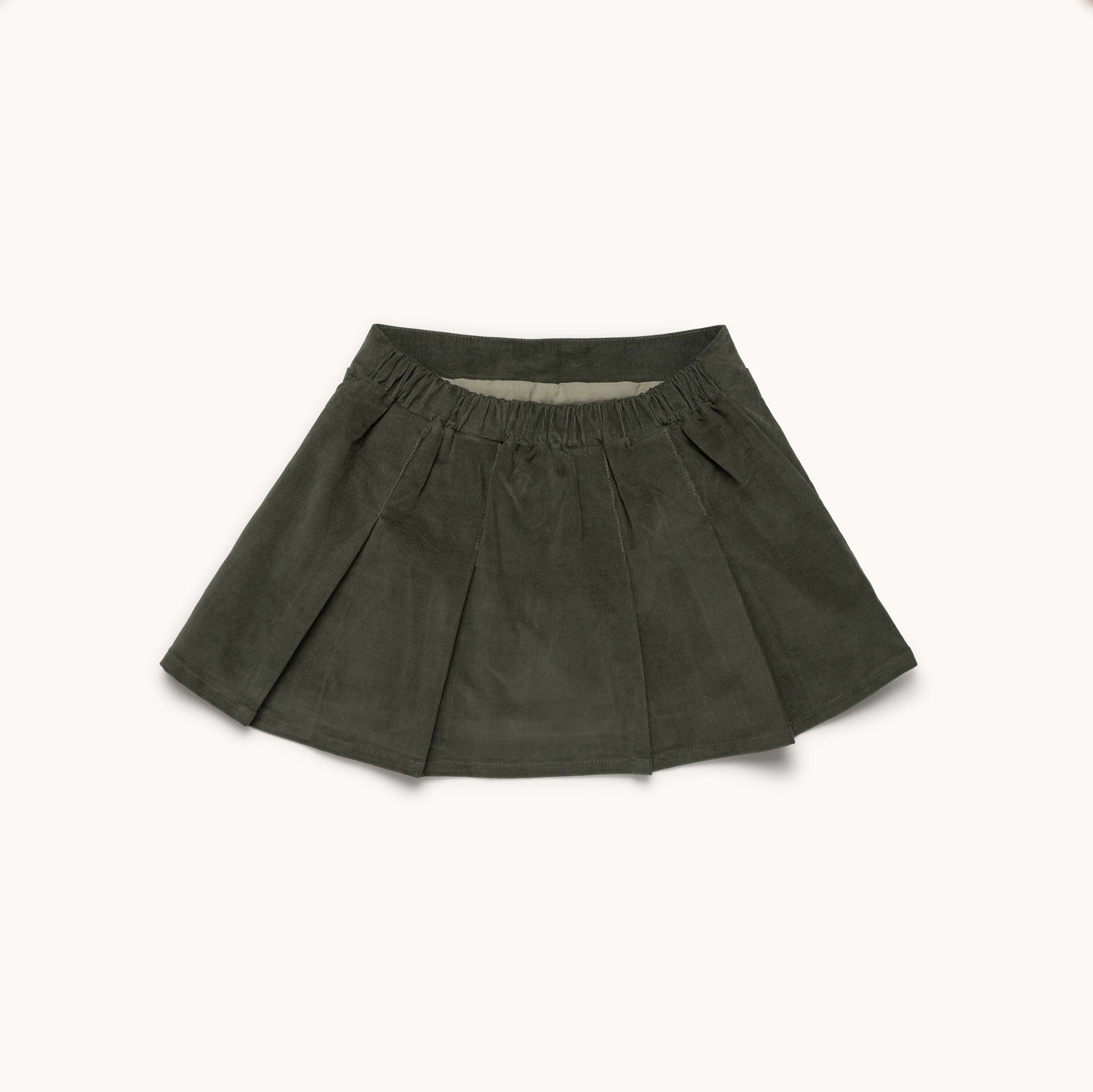 La falda de tablas en pana verde oliva combina comodidad y diseño clásico. Su cintura elástica —lisa en la parte delantera— hace que sea muy favorecedora, mientras que el forro interior aporta mayor confort. Con un ligero toque de elastano, esta prenda facilita el movimiento de las niñas y se adapta a su ritmo de vida.Disponible en tallas desde los 3 hasta los 8 años.